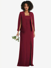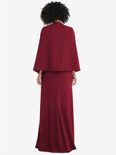 結婚式やその他の正式な機会に最適なこのオープンフロントケープは、柔らかいクレープ生地で作られています。肩を暖かく保つマントの袖を特徴とするこのケープスタイルのトップは、フォーマルドレスにぴったりです。