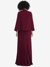 結婚式やその他の正式な機会に最適なこのオープンフロントケープは、柔らかいクレープ生地で作られています。肩を暖かく保つマントの袖を特徴とするこのケープスタイルのトップは、フォーマルドレスにぴったりです。