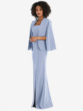 【NEW】【STYLE: J525】オープンフロント スプリット スリーブ ケープ ジャケット【COLOR: Sky Blue】【SIZE: 00-30W】