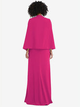 結婚式やその他の正式な機会に最適なこのオープンフロントケープは、柔らかいクレープ生地で作られています。肩を暖かく保つマントの袖を特徴とするこのケープスタイルのトップは、フォーマルドレスにぴったりです。
