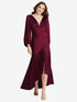 【NEW】【STYLE: LB008】パフ スリーブ 非対称 ドロップ ウエスト ハイロー スリップ ドレス - ティーガン【COLOR: Cabernet】【SIZE: 00-30W】