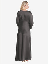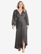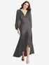 【NEW】【STYLE: LB008】パフ スリーブ 非対称 ドロップ ウエスト ハイロー スリップ ドレス - ティーガン【COLOR: Caviar Gray】【SIZE: 00-30W】