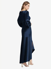 【NEW】【STYLE: LB008】パフ スリーブ 非対称 ドロップ ウエスト ハイロー スリップ ドレス - ティーガン【COLOR: Midnight Navy】【SIZE: 00-30W】