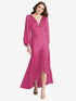 パフスリーブは、この完全な長さの高さのスリップドレスの動きとエネルギーを強調しています。柔らかくて流れるlux charmeuseから作られたこのドレスは、ボディスとドロップウエストに繊細なシャーリングを備えた深いVネックを誇っています。非対称の縫い目は、完全にスリットされた高さのスカートを強調します。