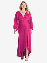 パフスリーブは、この完全な長さの高さのスリップドレスの動きとエネルギーを強調しています。柔らかくて流れるlux charmeuseから作られたこのドレスは、ボディスとドロップウエストに繊細なシャーリングを備えた深いVネックを誇っています。非対称の縫い目は、完全にスリットされた高さのスカートを強調します。