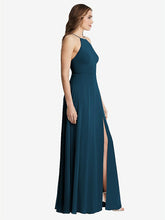 【NEW】【STYLE: LB010】高 首 シフォン マキシ ドレス 前面 スリット - lela【COLOR: Atlantic Blue】【SIZE: 00-30W】