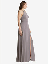 【NEW】【STYLE: LB010】高 首 シフォン マキシ ドレス 前面 スリット - lela【COLOR: Cashmere Gray】【SIZE: 00-30W】