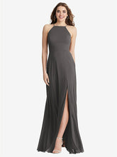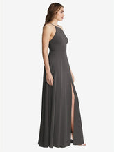 【NEW】【STYLE: LB010】高 首 シフォン マキシ ドレス 前面 スリット - lela【COLOR: Caviar Gray】【SIZE: 00-30W】