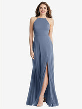 【NEW】【STYLE: LB010】高 首 シフォン マキシ ドレス 前面 スリット - lela【COLOR: Larkspur Blue】【SIZE: 00-30W】