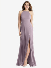 【NEW】【STYLE: LB010】高 首 シフォン マキシ ドレス 前面 スリット - lela【COLOR: Lilac Dusk】【SIZE: 00-30W】