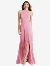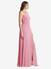 【NEW】【STYLE: LB010】高 首 シフォン マキシ ドレス 前面 スリット - lela【COLOR: Peony Pink】【SIZE: 00-30W】
