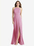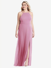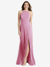 【NEW】【STYLE: LB010】高 首 シフォン マキシ ドレス 前面 スリット - lela【COLOR: Powder Pink】【SIZE: 00-30W】