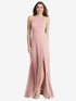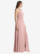 【NEW】【STYLE: LB010】高 首 シフォン マキシ ドレス 前面 スリット - lela【COLOR: Rose - PANTONE Rose Quartz】【SIZE: 00-30W】