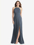 【NEW】【STYLE: LB010】高 首 シフォン マキシ ドレス 前面 スリット - lela【COLOR: Silverstone】【SIZE: 00-30W】