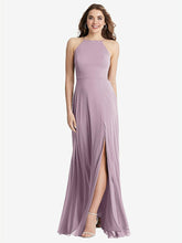 【NEW】【STYLE: LB010】高 首 シフォン マキシ ドレス 前面 スリット - lela【COLOR: Suede Rose】【SIZE: 00-30W】