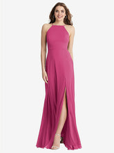 【NEW】【STYLE: LB010】高 首 シフォン マキシ ドレス 前面 スリット - lela【COLOR: Tea Rose】【SIZE: 00-30W】