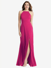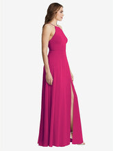 【NEW】【STYLE: LB010】高 首 シフォン マキシ ドレス 前面 スリット - lela【COLOR: Think Pink】【SIZE: 00-30W】
