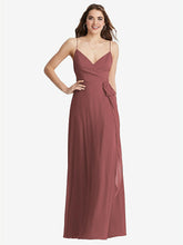 古典的なフォーマルなシルエットと素敵で軽いラックスシフォンファブリックと組み合わせて、このマキシラップドレスは、迅速な結婚式から洗練されたカクテルパーティーまでの空気を歓迎することは間違いありません。腰に洗練されたサッシタスは、フルサークルスカートの流れるエネルギーを強調しています。 Vネックと繊細なスパゲッティストラップは、低いbalkバックとペアになります。