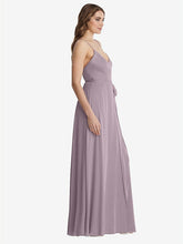 古典的なフォーマルなシルエットと素敵で軽いラックスシフォンファブリックと組み合わせて、このマキシラップドレスは、迅速な結婚式から洗練されたカクテルパーティーまでの空気を歓迎することは間違いありません。腰に洗練されたサッシタスは、フルサークルスカートの流れるエネルギーを強調しています。 Vネックと繊細なスパゲッティストラップは、低いbalkバックとペアになります。