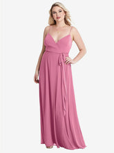 古典的なフォーマルなシルエットと素敵で軽いラックスシフォンファブリックと組み合わせて、このマキシラップドレスは、迅速な結婚式から洗練されたカクテルパーティーまでの空気を歓迎することは間違いありません。腰に洗練されたサッシタスは、フルサークルスカートの流れるエネルギーを強調しています。 Vネックと繊細なスパゲッティストラップは、低いbalkバックとペアになります。