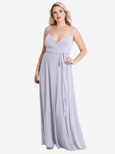 古典的なフォーマルなシルエットと素敵で軽いラックスシフォンファブリックと組み合わせて、このマキシラップドレスは、迅速な結婚式から洗練されたカクテルパーティーまでの空気を歓迎することは間違いありません。腰に洗練されたサッシタスは、フルサークルスカートの流れるエネルギーを強調しています。 Vネックと繊細なスパゲッティストラップは、低いbalkバックとペアになります。