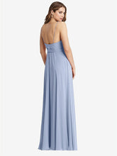 古典的なフォーマルなシルエットと素敵で軽いラックスシフォンファブリックと組み合わせて、このマキシラップドレスは、迅速な結婚式から洗練されたカクテルパーティーまでの空気を歓迎することは間違いありません。腰に洗練されたサッシタスは、フルサークルスカートの流れるエネルギーを強調しています。 Vネックと繊細なスパゲッティストラップは、低いbalkバックとペアになります。