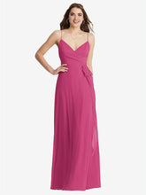 古典的なフォーマルなシルエットと素敵で軽いラックスシフォンファブリックと組み合わせて、このマキシラップドレスは、迅速な結婚式から洗練されたカクテルパーティーまでの空気を歓迎することは間違いありません。腰に洗練されたサッシタスは、フルサークルスカートの流れるエネルギーを強調しています。 Vネックと繊細なスパゲッティストラップは、低いbalkバックとペアになります。
