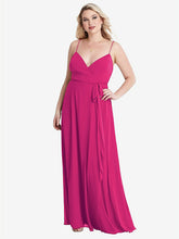 古典的なフォーマルなシルエットと素敵で軽いラックスシフォンファブリックと組み合わせて、このマキシラップドレスは、迅速な結婚式から洗練されたカクテルパーティーまでの空気を歓迎することは間違いありません。腰に洗練されたサッシタスは、フルサークルスカートの流れるエネルギーを強調しています。 Vネックと繊細なスパゲッティストラップは、低いbalkバックとペアになります。