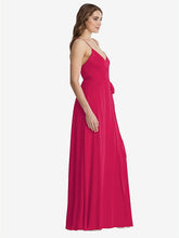 古典的なフォーマルなシルエットと素敵で軽いラックスシフォンファブリックと組み合わせて、このマキシラップドレスは、迅速な結婚式から洗練されたカクテルパーティーまでの空気を歓迎することは間違いありません。腰に洗練されたサッシタスは、フルサークルスカートの流れるエネルギーを強調しています。 Vネックと繊細なスパゲッティストラップは、低いbalkバックとペアになります。