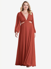 【NEW】【STYLE: LB015】ビショップ 袖 フリル シフォン カットアウト マキシ ドレス - ハーロー 【COLOR: Amber Sunset】【SIZE: 00-30W】
