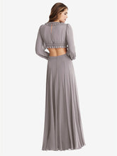 【NEW】【STYLE: LB015】ビショップ 袖 フリル シフォン カットアウト マキシ ドレス - ハーロー 【COLOR: Cashmere Gray】【SIZE: 00-30W】