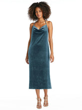 【NEW】【STYLE: LB020】カウルネック コンバーチブル ベルベット ミディ スリップ ドレス - イサ【COLOR: Dutch Blue】【SIZE: 00-30W】