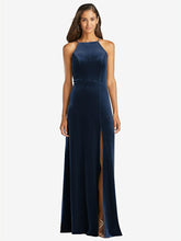 【NEW】【STYLE: LB021】ベルベット ホルター マキシ ドレス 前面 スリット - ハーパー【COLOR: Midnight Navy】【SIZE: 00-30W】