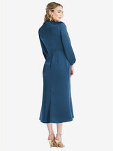 【NEW】【STYLE: LB024】高 襟 パフ 袖 MIDI ドレス - ブロンウィン【COLOR: Dusk Blue】【SIZE: 00-30W】