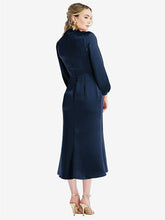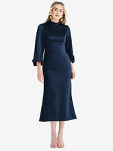 【NEW】【STYLE: LB024】高 襟 パフ 袖 MIDI ドレス - ブロンウィン【COLOR: Midnight Navy】【SIZE: 00-30W】