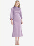 【NEW】【STYLE: LB024】高 襟 パフ 袖 MIDI ドレス - ブロンウィン【COLOR: Pale Purple】【SIZE: 00-30W】