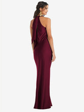 【NEW】【STYLE: LB025】ドレープ ひねり ホルター ネクタイバック トランペット ガウン【COLOR: Cabernet】【SIZE: 00-30W】