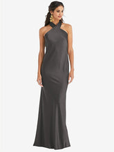 【NEW】【STYLE: LB025】ドレープ ひねり ホルター ネクタイバック トランペット ガウン【COLOR: Caviar Gray】【SIZE: 00-30W】