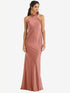 【NEW】【STYLE: LB025】ドレープ ひねり ホルター ネクタイバック トランペット ガウン【COLOR: Desert Rose】【SIZE: 00-30W】
