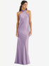 【NEW】【STYLE: LB025】ドレープ ひねり ホルター ネクタイバック トランペット ガウン【COLOR: Pale Purple】【SIZE: 00-30W】