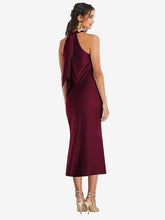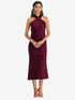 【NEW】【STYLE: LB026】ドレープ ひねり ホルター ネクタイバック MIDI ドレス - パロマ【COLOR: Cabernet】【SIZE: 00-30W】
