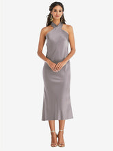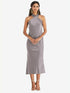 【NEW】【STYLE: LB026】ドレープ ひねり ホルター ネクタイバック MIDI ドレス - パロマ【COLOR: Cashmere Gray】【SIZE: 00-30W】