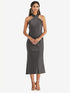 【NEW】【STYLE: LB026】ドレープ ひねり ホルター ネクタイバック MIDI ドレス - パロマ【COLOR: Caviar Gray】【SIZE: 00-30W】
