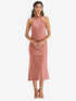【NEW】【STYLE: LB026】ドレープ ひねり ホルター ネクタイバック MIDI ドレス - パロマ【COLOR: Desert Rose】【SIZE: 00-30W】