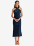 【NEW】【STYLE: LB026】ドレープ ひねり ホルター ネクタイバック MIDI ドレス - パロマ【COLOR: Midnight Navy】【SIZE: 00-30W】