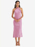 【NEW】【STYLE: LB026】ドレープ ひねり ホルター ネクタイバック MIDI ドレス - パロマ【COLOR: Powder Pink】【SIZE: 00-30W】