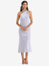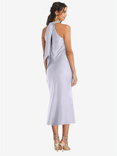 【NEW】【STYLE: LB026】ドレープ ひねり ホルター ネクタイバック MIDI ドレス - パロマ【COLOR: Silver Dove】【SIZE: 00-30W】