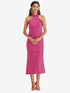 【NEW】【STYLE: LB026】ドレープ ひねり ホルター ネクタイバック MIDI ドレス - パロマ【COLOR: Tea Rose】【SIZE: 00-30W】