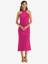 【NEW】【STYLE: LB026】ドレープ ひねり ホルター ネクタイバック MIDI ドレス - パロマ【COLOR: Think Pink】【SIZE: 00-30W】