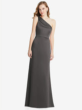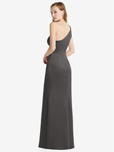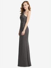 【NEW】【STYLE: LB028】shirred ワンショルダー サテン トランペット ドレス - マディ【COLOR: Caviar Gray】【SIZE: 00-30W】